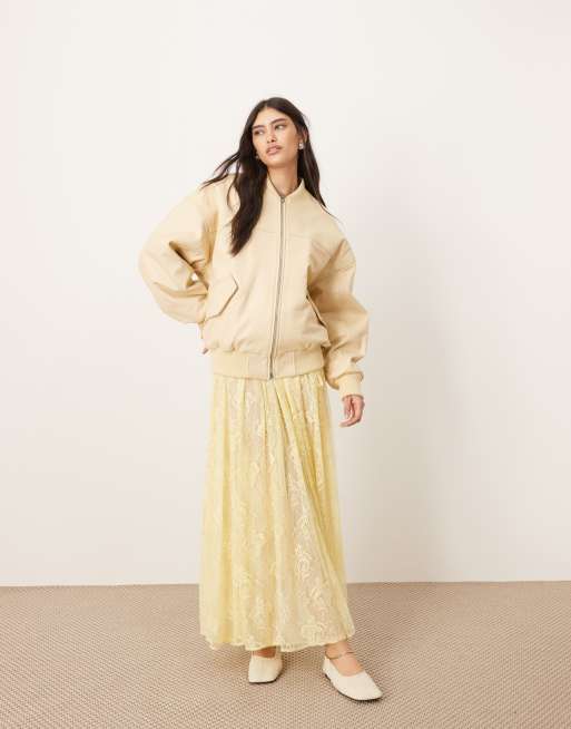 ARRANGE – Citrongul maxikjol i spets med dragsko och volym