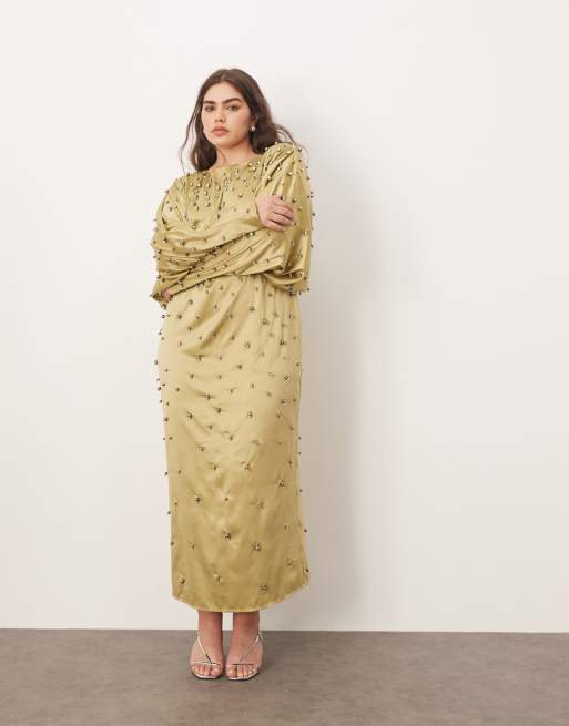 ARRANGE Curve – Grön maxiklänning med öppen rygg och bollutsmyckningar