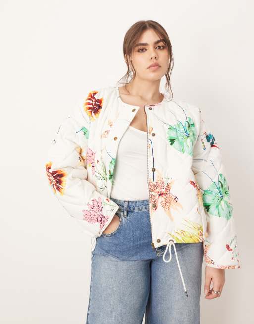 ARRANGE Curve – Quiltad bomberjacka med växttryck