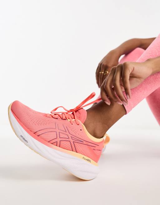 Asics – Running Gel-Nimbus 25 – Persikorosa, grova träningsskor med kontrastsula