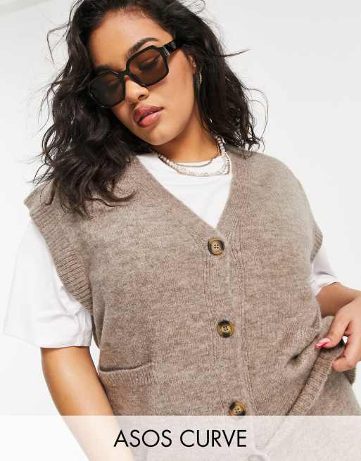 ASOS DESIGN Curve – Beige stickad väst med knäppning, del av set