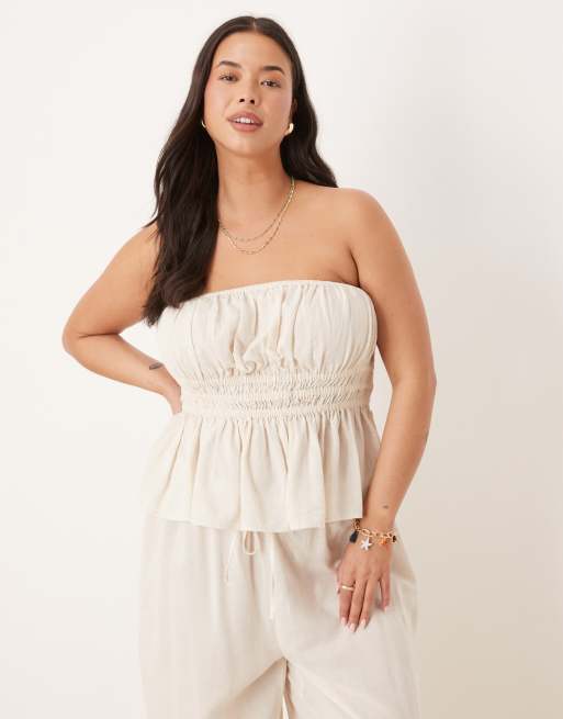 ASOS DESIGN Curve – Belle – Naturfärgad, smockad strand-bandeau i linne