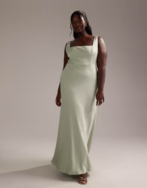 ASOS DESIGN Curve – Brudtärnor – Ljusgrön maxiklänning i satin med fyrkantig halsringning