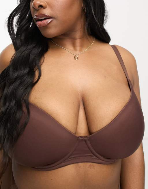 ASOS DESIGN Curve – Brun t-shirtbehå i mikrofiber med formade kupor i mikrofiber
