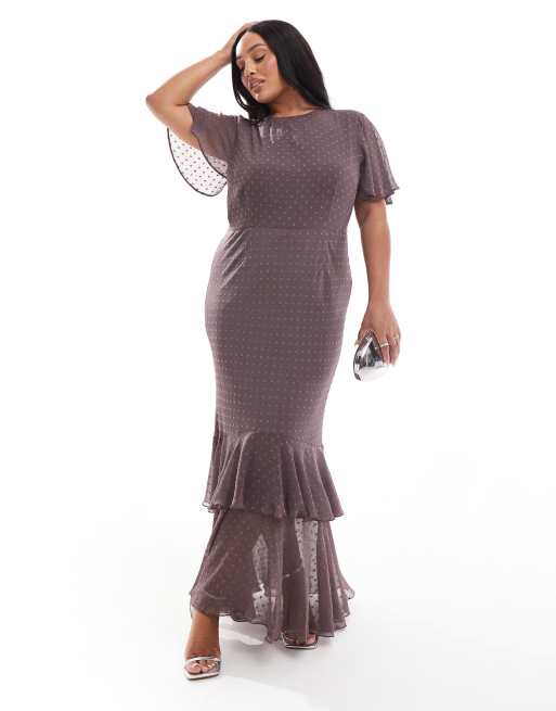 ASOS DESIGN Curve – Brunlila, panelsydd maxiklänning i dobbyväv med volang och utställda ärmar