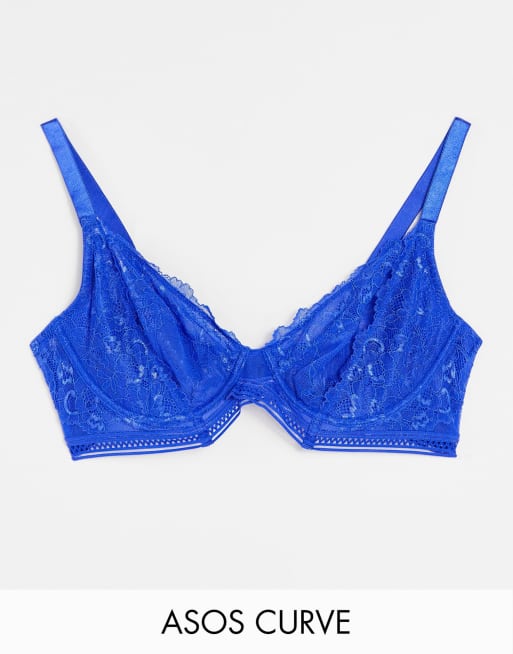 ASOS DESIGN Curve – Exclusive – Hailey – Koboltblå, elastisk BH med geometriska detaljer och spets