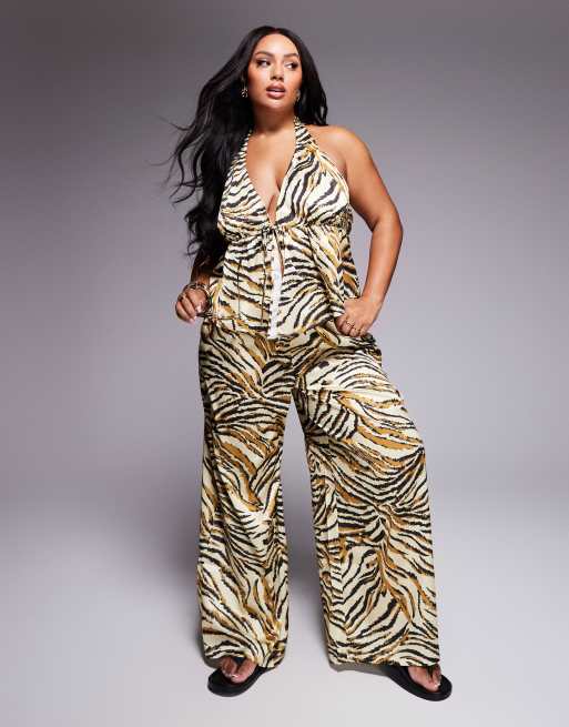 ASOS DESIGN Curve – Gia – Djurmönstrade byxor i satin