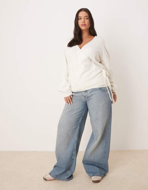 ASOS DESIGN Curve – Gräddvit, stickad kofta i omlottdesign