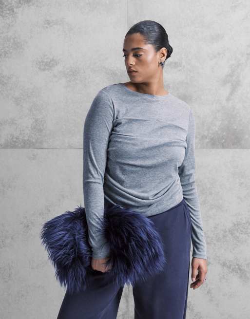 ASOS DESIGN Curve – Gråmelerad, mjuk, draperad T-shirt i jersey med långa ärmar