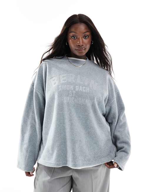 ASOS DESIGN Curve – Gråmelerad sweatshirt i teddy med präglat Berlin-tryck