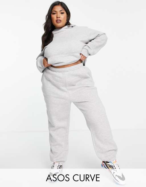 ASOS DESIGN Curve – Gråmelerad träningsoverall i oversize med huvtröja och mjukisbyxor