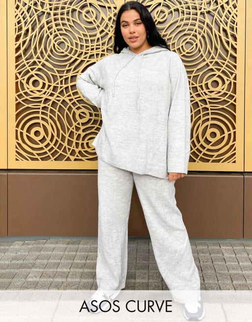 ASOS DESIGN Curve – Gråmelerat stickat set med huvtröja och byxor med vida ben