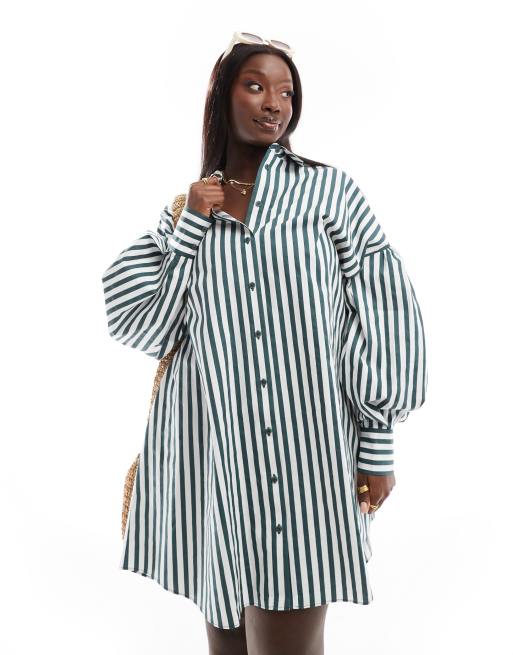 ASOS DESIGN Curve – Grönrandig minilång skjortklänning i boyfriendmodell med rymliga ärmar