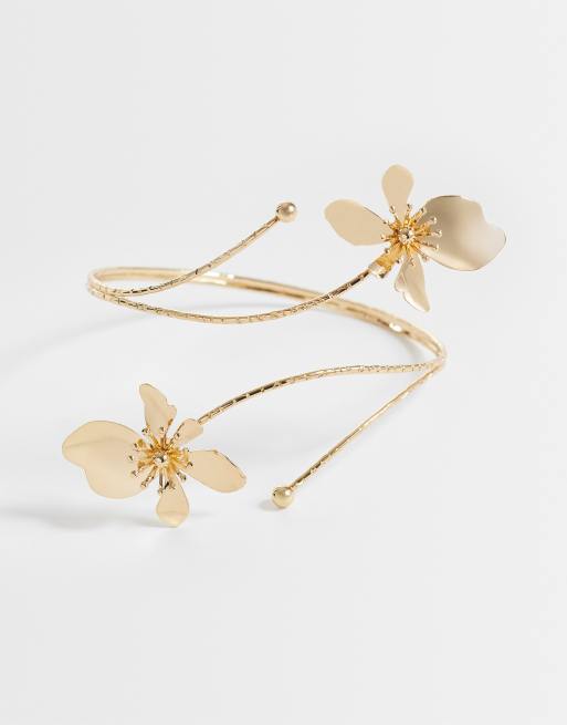 ASOS DESIGN Curve – Guldfärgad armring med omlottdesign och blommor
