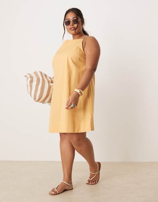 ASOS DESIGN Curve – Guldfärgad, formlös miniklänning med båtringning