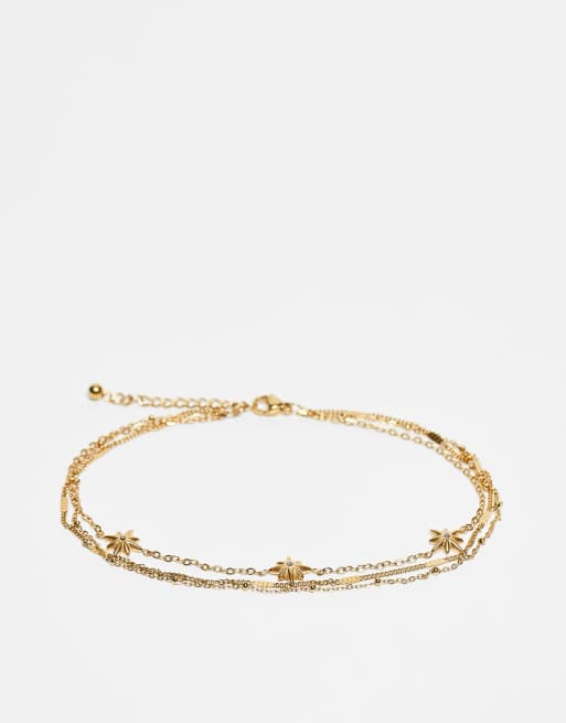 ASOS DESIGN Curve – Guldfärgade, blandade fotlänkar med stjärna i rostfritt stål, 3-pack