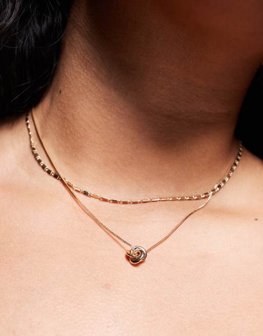 ASOS DESIGN Curve – Guldfärgade halsband med texturerad kedja och knut, 2-pack