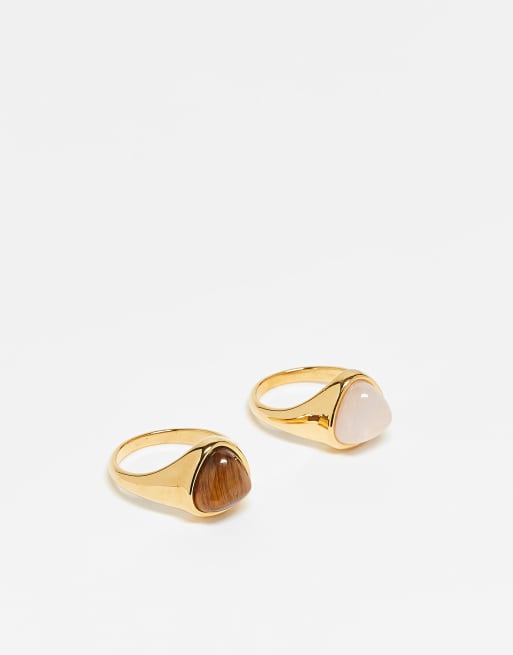 ASOS DESIGN Curve – Guldfärgade ringar i rostfritt stål med halvädelstenar, 2-pack