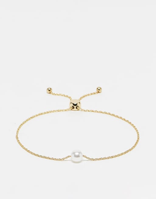 ASOS DESIGN Curve – Guldfärgat armband med dragsko-design och pärldetalj