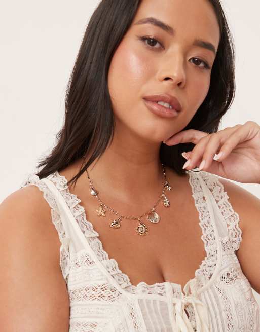 ASOS DESIGN Curve – Guldfärgat halsband med havsberlocker