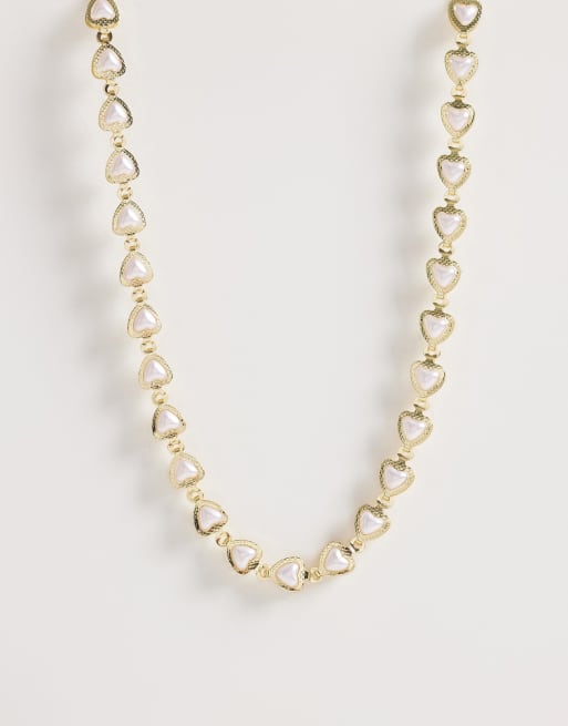 ASOS DESIGN Curve – Guldfärgat, kort halsband med små hjärtan och fuskpärlor