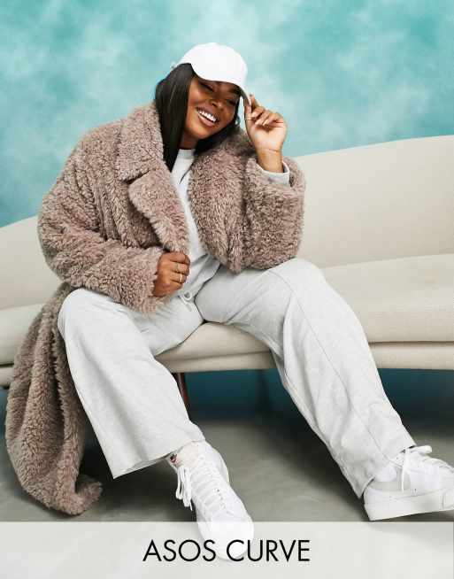 ASOS DESIGN Curve – Hero – Malvafärgad maxikappa i fuskpäls