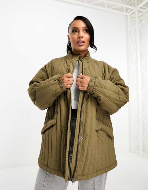 ASOS DESIGN Curve – Kakifärgad, quiltad bomullsjacka i rak modell