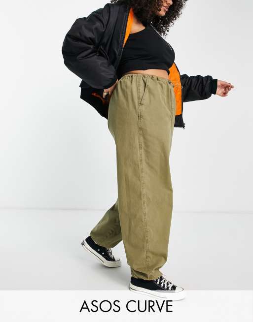 ASOS DESIGN Curve – Kakifärgade cargobyxor 90-talsstil med dragsko