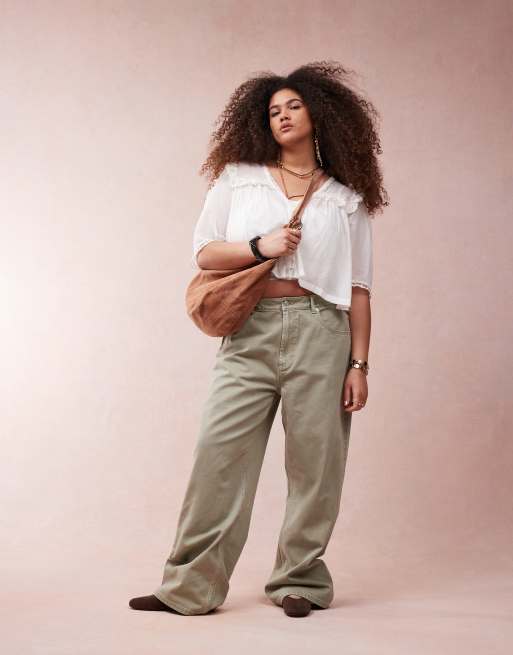 ASOS DESIGN Curve – Kakifärgade jeans i dad-modell med vida ben