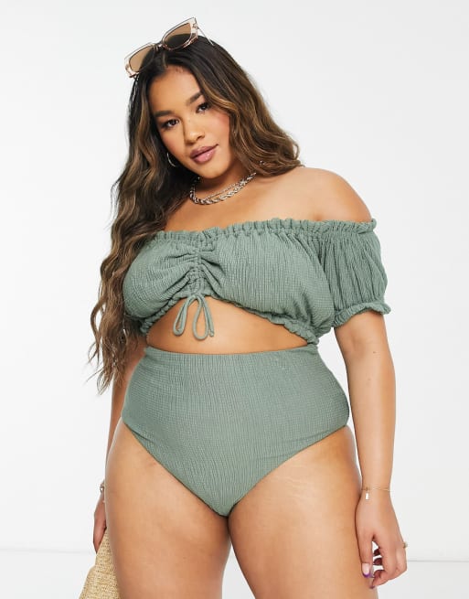 ASOS DESIGN Curve – Kakigrön, strukturerad bikini i milkmaid-modell