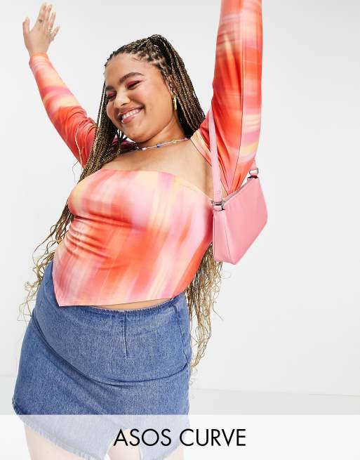 ASOS DESIGN Curve – Kort kofta i suddigt, marmorerat mönster