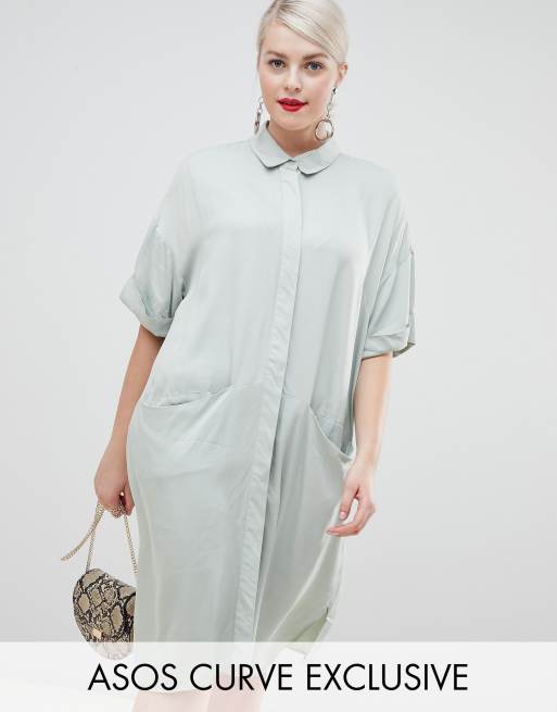 ASOS DESIGN – Curve – Kortärmad skjortklänning i midimodell med draperade fickor