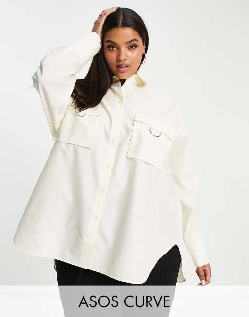 ASOS DESIGN Curve – Krämvit skjorta i oversize med cargofickor