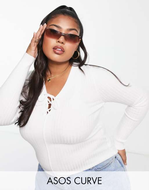 ASOS DESIGN Curve – Krämvit stickad topp med snörning