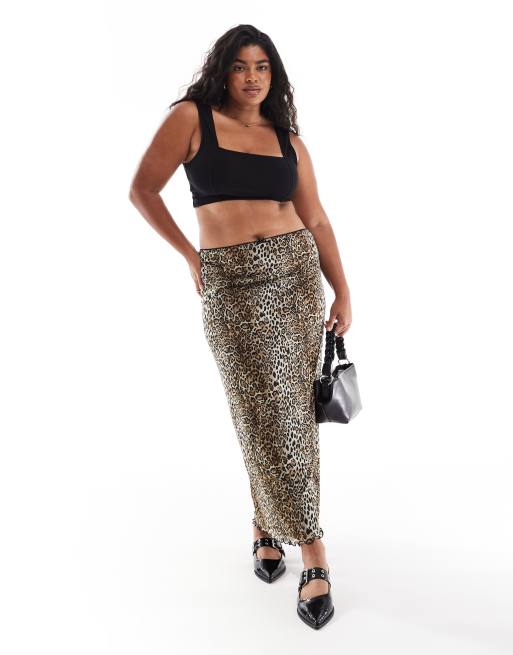 ASOS DESIGN Curve – Leopardmönstrad midikjol i mesh
