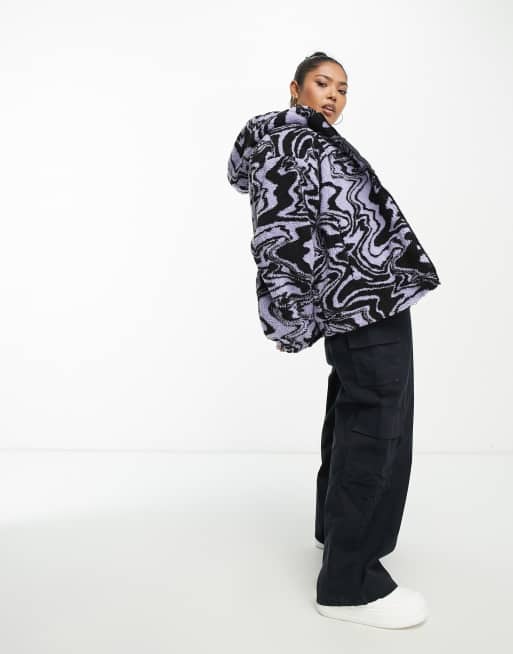 ASOS DESIGN Curve – Lilamönstrad teddyjacka