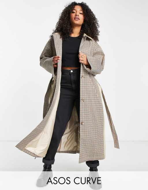 ASOS DESIGN Curve – Ljusbeige, rutig trenchcoat