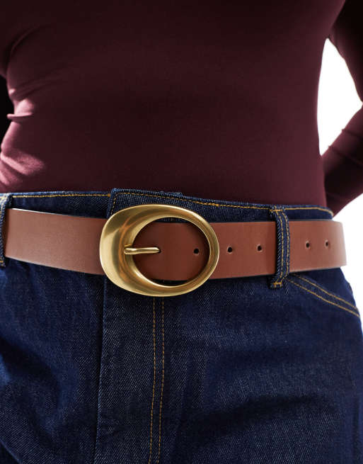 ASOS DESIGN Curve – Ljusbrunt jeansskärp med ovalt spänne