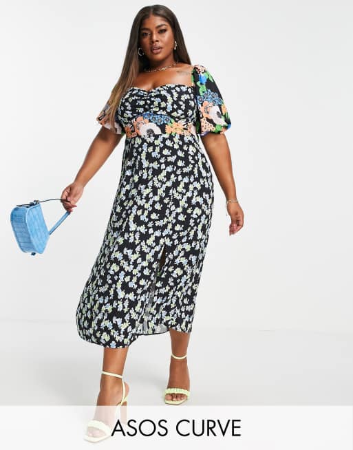 ASOS DESIGN Curve – Midiklänning med olika blommönster