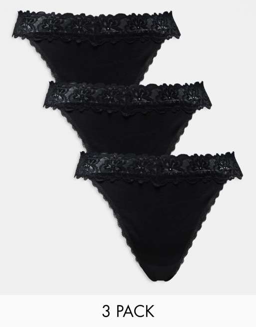 ASOS DESIGN Curve – Minnie – Svarta stringtrosor i bomull med spets vid midjan, 3-pack