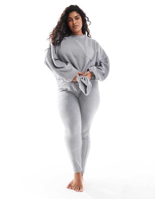 ASOS DESIGN Curve – Mixa & matcha – Grått set i fleece