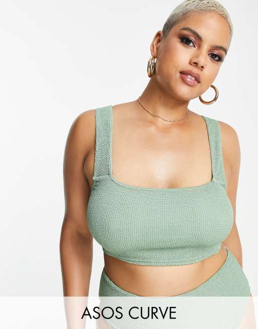 ASOS DESIGN Curve – Mixa och matcha – Khakifärgad, krinklad bikiniöverdel med fyrkantig halsringning