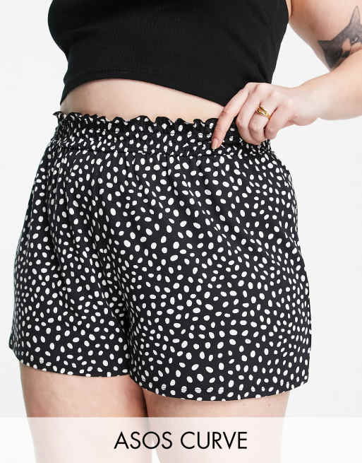 ASOS DESIGN Curve – Monokroma prickiga shorts med smockad midja