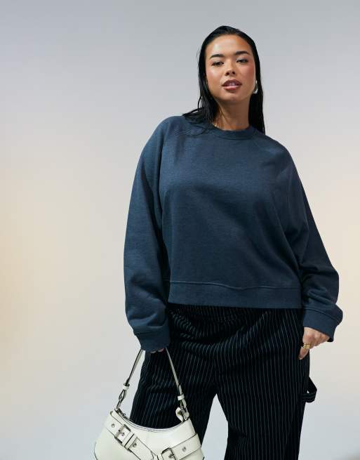 ASOS DESIGN Curve – Mörkgrå sweatshirt i oversize med raglan-ärmar