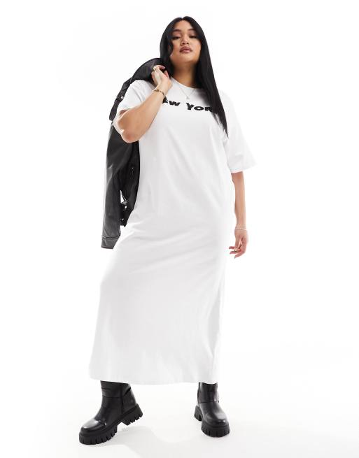 ASOS DESIGN Curve – Oversize t-shirtklänning i midaxilängd med texttryck