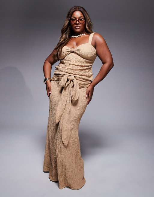 ASOS DESIGN Curve – Ozzy – Beige, texturerat strandset