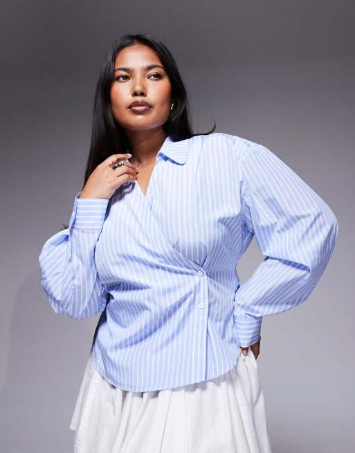 ASOS DESIGN Curve – Randig omlottskjorta med cocoon-ärmar