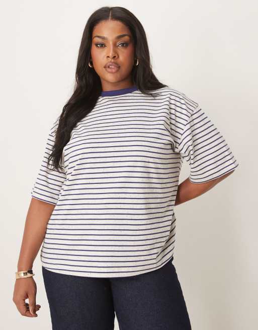 ASOS DESIGN Curve – Randig t-shirt i oversize