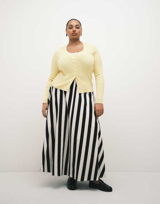 ASOS DESIGN Curve – Randig, vid kjol i bomullssatin med volym