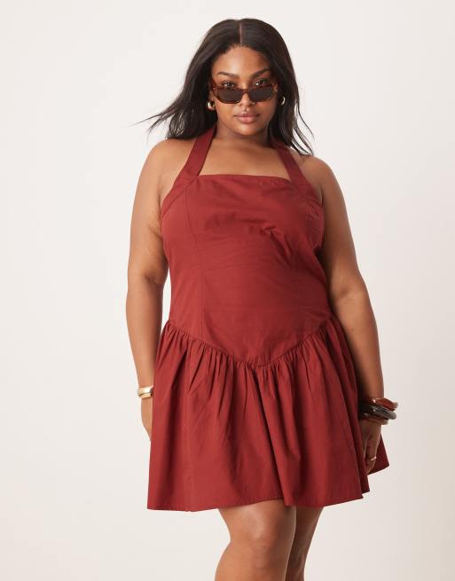 ASOS DESIGN Curve – Röd miniklänning med halterneck och volangfåll